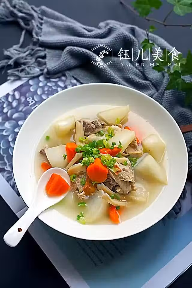做法:1、蘿蔔和胡蘿蔔都切成小塊,排骨清洗乾淨。2、排骨放入冷水鍋中煮5分鐘,撈出來將油脂清洗掉。3、排骨放入電飯煲,加入蔥、薑絲按煲湯鍵即可。4、排骨湯煲好後,加入蘿蔔、胡蘿蔔、鹽、雞精再煲10分鐘,煲至蘿蔔入口即化,最後再撒入蔥花即可飲用。