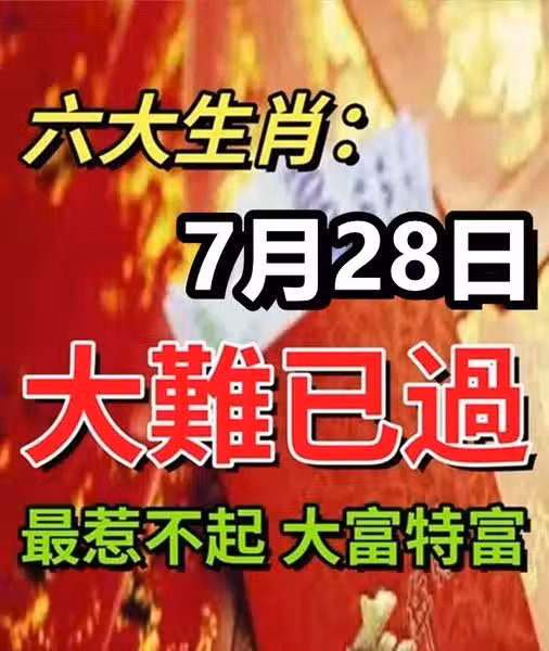 六大生肖:7月28日大難已過(最惹不起)大富特富!