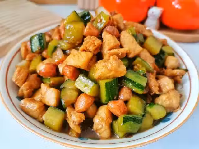 主要食材:雞胸肉、黃瓜、花生米、大蔥、生薑、生抽、老抽、料酒、香醋、胡椒粉、玉米澱粉、白砂糖、雞蛋清