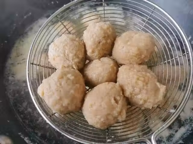 5、鍋中爆香蔥蒜,倒入一大碗清水煮開,放入泡好的裙帶菜和肉丸子煮開,繼續煮兩分鐘。