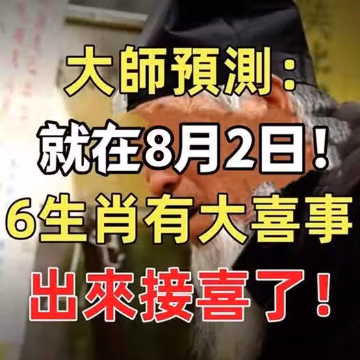 六大生肖出來接喜,8月2日開始有大喜事,好運福氣接涌而至