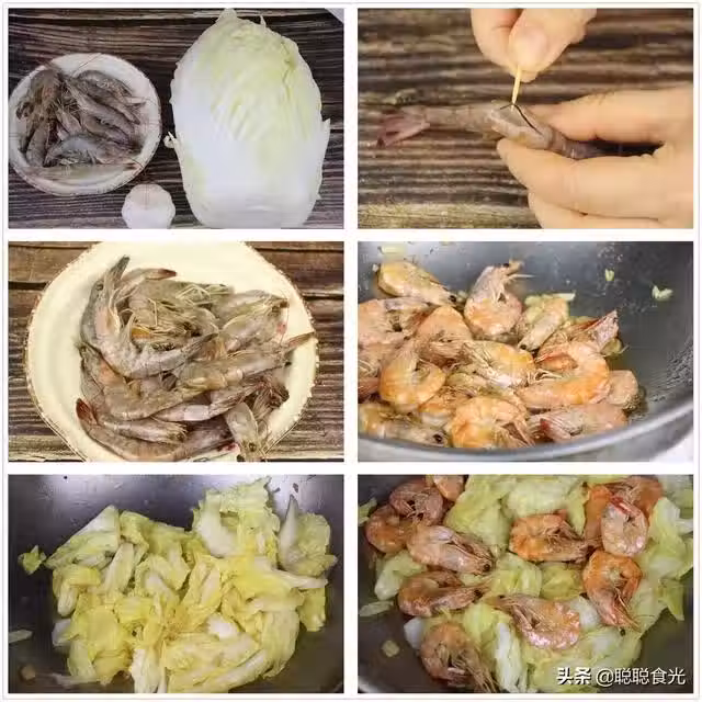 6白菜炒熟後,放入之前炒熟的蝦,然後放入1勺鹽和1勺蚝油,還可以放少量的胡椒粉炒均勻就可以出鍋了。