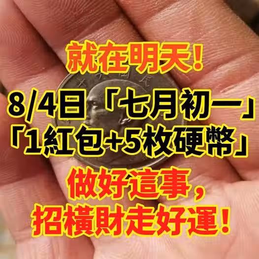 就在明天! 8/4日「七月初一」準備「1個紅包+5枚硬幣」做好這事,招橫財走好運!