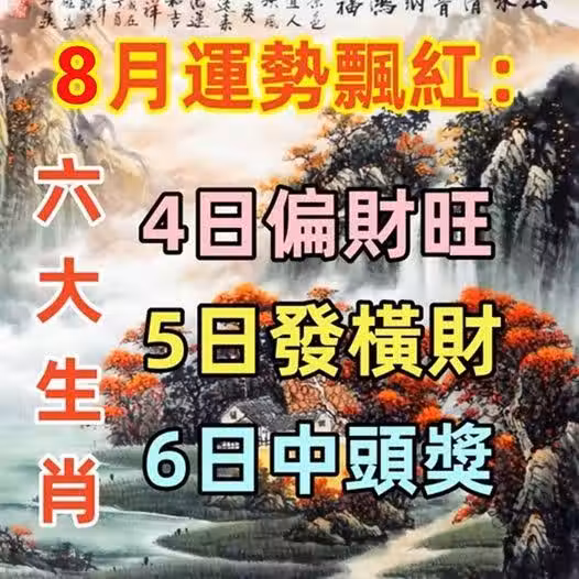 六大生肖運勢飄紅:8月4日偏財旺,5日發橫財,6日中頭獎