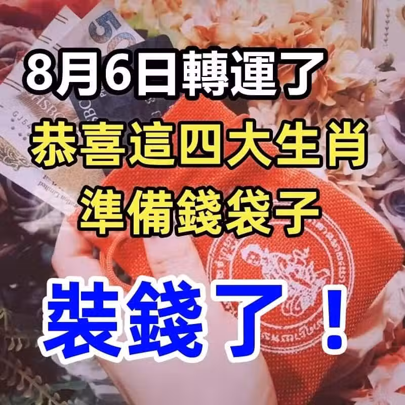 8月6日轉運了,恭喜這四大生肖準備錢袋子裝錢了
