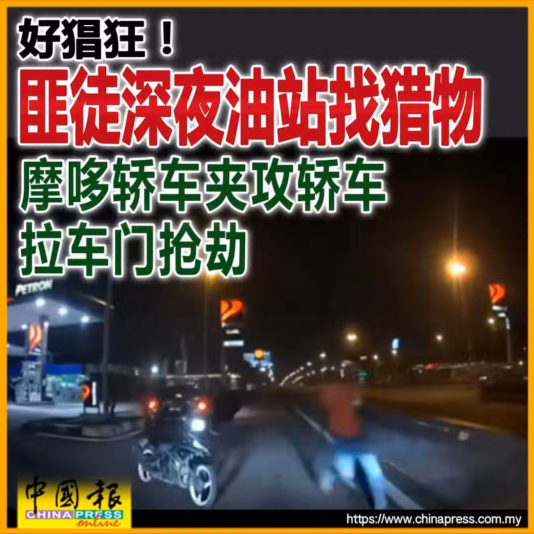(梳邦再也7日訊)好猖狂!一批匪徒於凌晨分乘摩哆和轎車,在大道油站尋找「獵物」,當他們看見一輛轎車路過時,立即攔下並打開對方車門企圖搶劫,所幸司機立即踩油門,僥倖逃離。