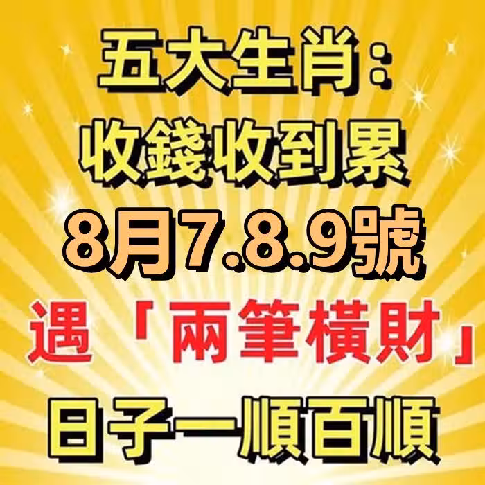 收錢收到累!8月7.8.9號遇「兩筆橫財」日子一順百順的生肖!