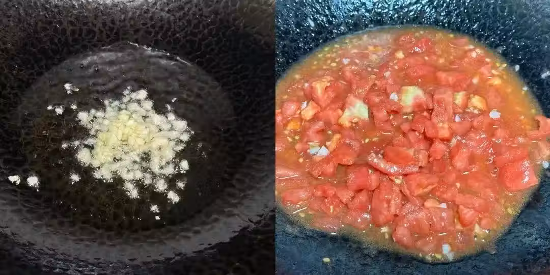 5、加入少量生抽、老抽、1勺番茄醬、1勺鹽調味;炒至番茄軟爛,加入清水煮開。