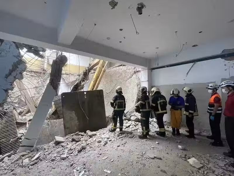 據三立新聞報導,福德國小今日下午正在進行大樓拆除工程,大約1點左右樓層突然塌陷,導致正在施工的兩輛怪手從4樓墜落到1樓後相疊,警消獲報後,立刻派遣11輛消防車、4輛救護車,共30名消防救護員到場,