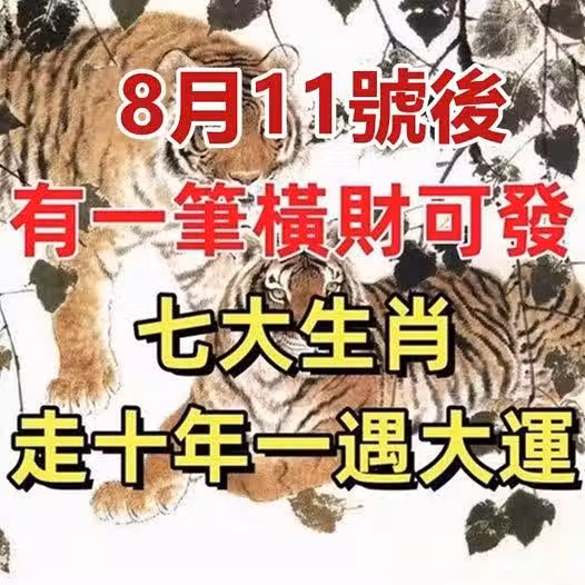 8月11號後有一筆橫財可發,走十年一遇大運的七大生肖