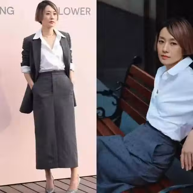 48歲的馬伊琍出席活動,穿了一件黑色短袖西裝內搭白色襯衫,簡潔又有層次;下身配的高腰直筒裙才是重點,高腰設計拉長比例,直筒裙的包容性根本看不出她已經是有兩個女兒的媽媽了。整體形象年輕化,又給人一種職場白領范的精緻知性感。