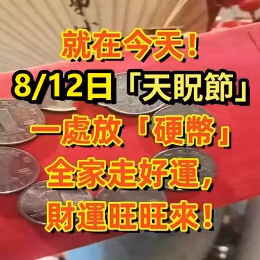 就在今天!8/12日「天眖節」一處放「硬幣」全家走好運,財運旺旺來!