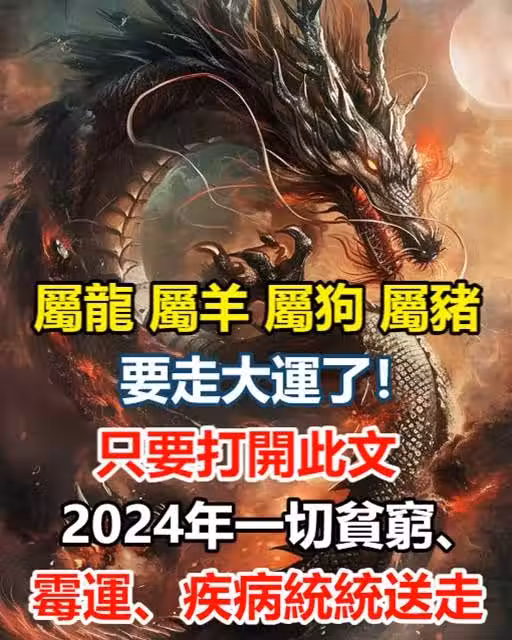 生肖【屬龍 屬羊 屬狗 屬豬】恭喜你要走大運了!今天你只要打開此文,2024年一切貧窮、霉運、疾病統統送走!