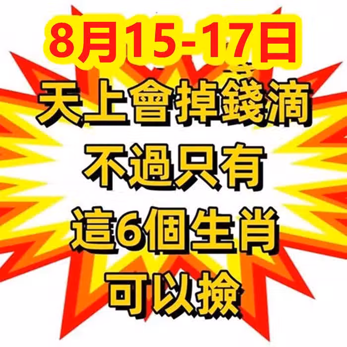 8月15 到 17日天上會掉錢滴,不過只有這6個生肖可以撿!