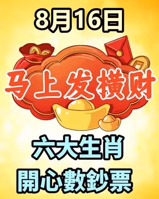 8月16日馬上發橫財,六大生肖開心數鈔票
