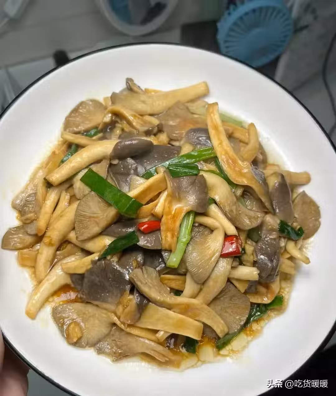 蒜末炒平菇袖珍菇水開後燙30秒撈出蒜末辣椒爆香倒入袖珍菇翻炒幾下