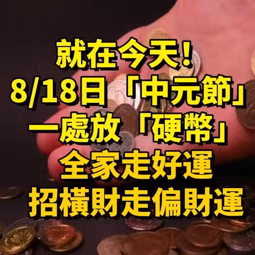 就在今天! 8/18日「中元節」一處放「硬幣」全家走好運,招橫財走偏財運!