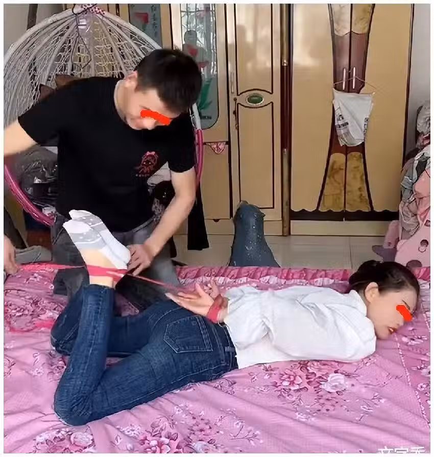 男子將妻子手腳反綁,讓其趴床上動彈不得:今天讓你知道我的厲害