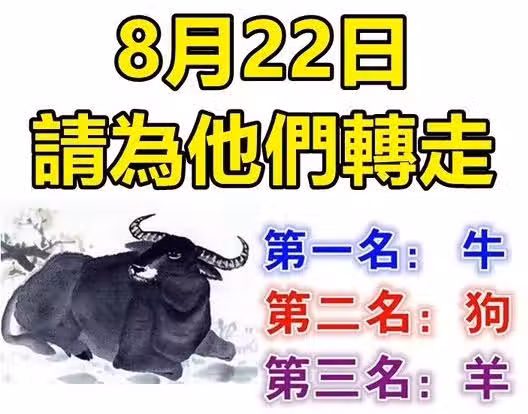 生肖(牛,狗,羊)8月22日請為他們轉走
