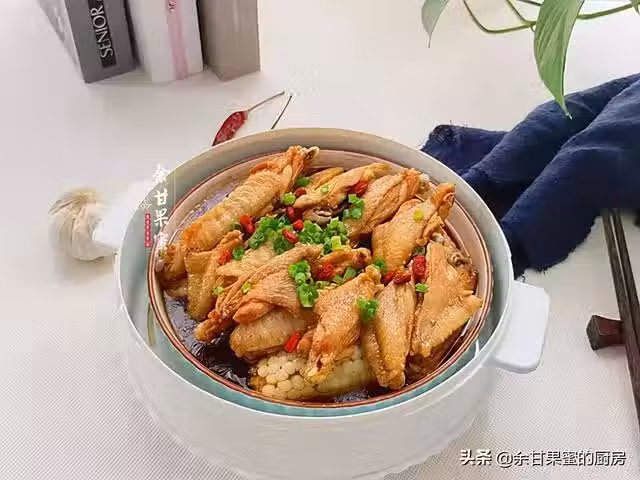 做法:雞中翅從中間切開,用老抽、食用油、鹽焗雞粉拌勻備用,玉米切成小條,盤於盤中,將雞中翅擺上,水開後上鍋蒸18分鐘左右,出鍋撒上蔥花、枸杞點綴即可。