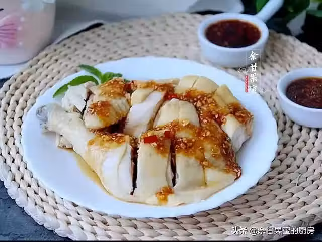 做法:鍋里燒開水,加入姜、蔥,加入雞肉焯煮10分鐘,撈出過冷水,再入鍋燒至微開,關火燜10分鐘,用筷子插入雞腿中間,沒有血水滲出即可撈出,放涼切塊,淋上蒜泥料汁或沙姜料汁即可上桌。