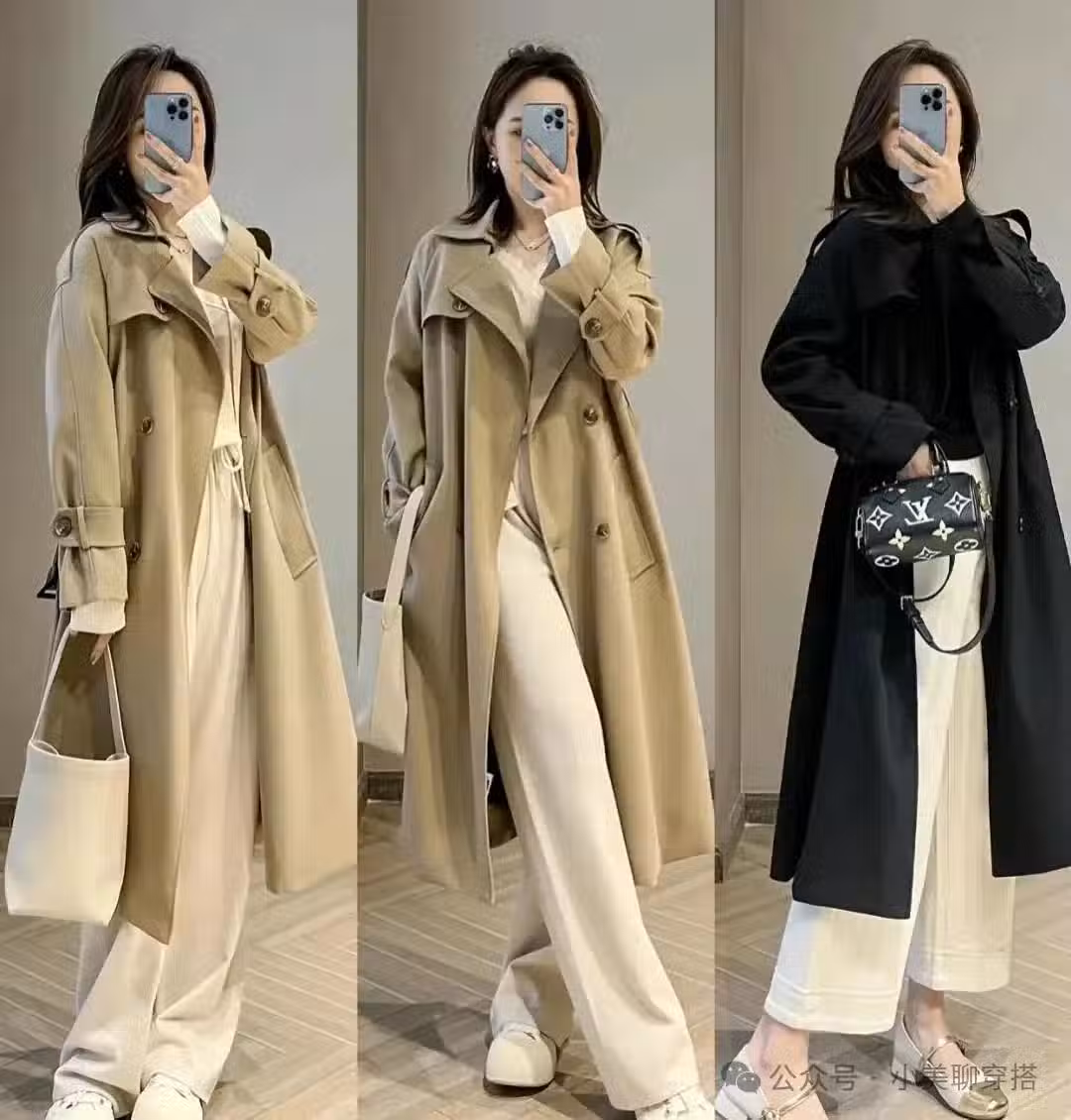 卡其色風衣,經典的基礎單品,每年秋天都在穿,搭配米色的闊腿褲,同色系搭配帶來高級感,又顯得格外大氣。