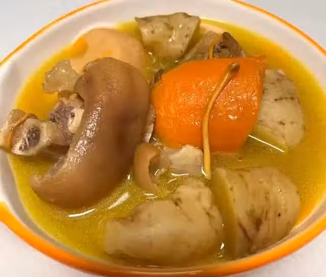 4、我炒肉的用的菜籽油,加上蟲草花,所以湯是黃色的,很有食慾