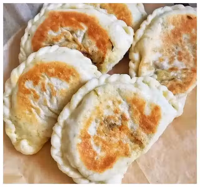 烙(200度,鍋底不能放油,頂面刷油,烙制金黃色馬上出鍋)