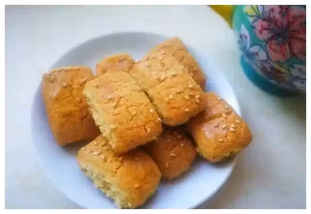 麵粉500克(低筋麵粉),糖150克,豆油200克,泡打粉3克,臭粉3克,芝麻50克