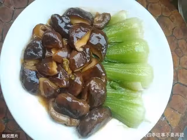 4、鍋預熱倒油,油熱後加入薑末、蒜末爆香,加入切好的香菇,加少許鹽翻炒均勻,再翻炒2分鐘,倒入提前調好的湯汁,大火煮,不斷翻動香菇,湯汁濃稠時關火,香菇連同湯汁一起倒入裝油菜的盤子裡,香菇油菜就做好了。