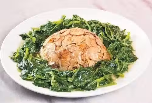 2.將筍翅、大白菜燒入味,放入扣碗里。