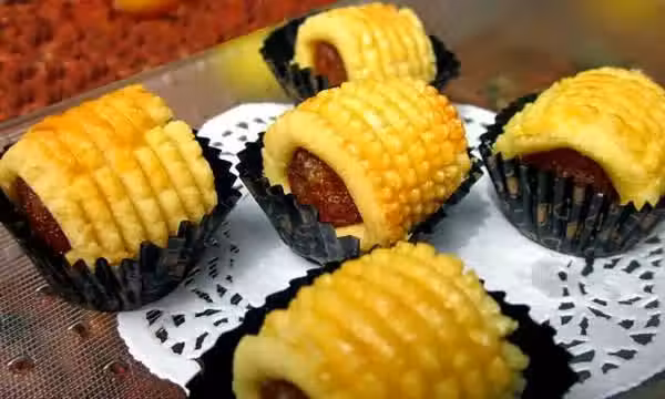 牛油加糖粉打發,分數次加入蛋黃拌勻。 加入粉類拌成團即可。 取一小部分麵糰放入黃梨酥模具內,擠出條狀。放上一顆長條狀的黃梨餡,捲起,切除多餘的餅皮。 表面塗上蛋黃液,放入預熱烤箱以150°烘25分鐘或至金黃色。