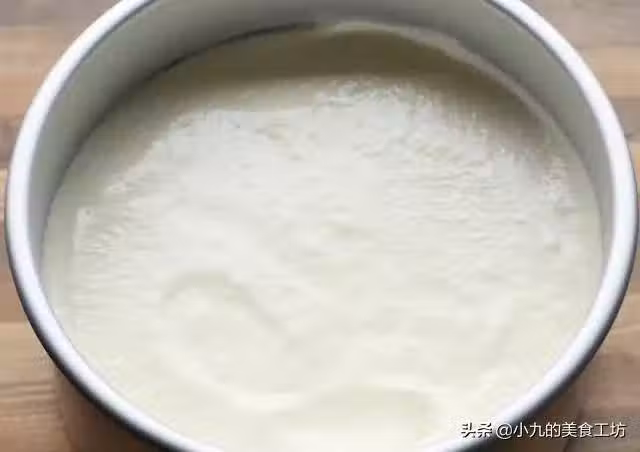 4、準備一個平底容器,先刷上一層熟油防粘,然後將麵糊倒入容器中,將表面整理平整。等鍋中水開之後,將麵糊上鍋蒸,大火蒸20分鐘左右,咱們的【蒸蛋糕】就熟了,關火燜3分鐘,就能出鍋享用了。