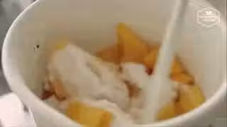 這個芒果泥有230 -240g左右,會分別用在慕斯層、芝士層、啫喱層,所以我們溫熱保存備用。