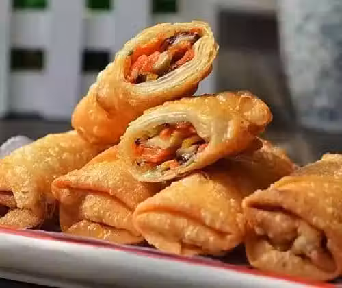 13起油鍋,油溫燒至170度左右的時候,一個一個放入春卷,中火炸至金黃色,放在濾油架上瀝去多餘的油。