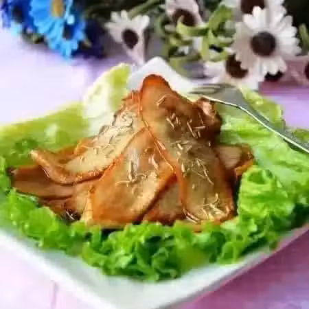 7.平底鍋抹薄薄一層油,燒熱後放入腌好的杏鮑菇片