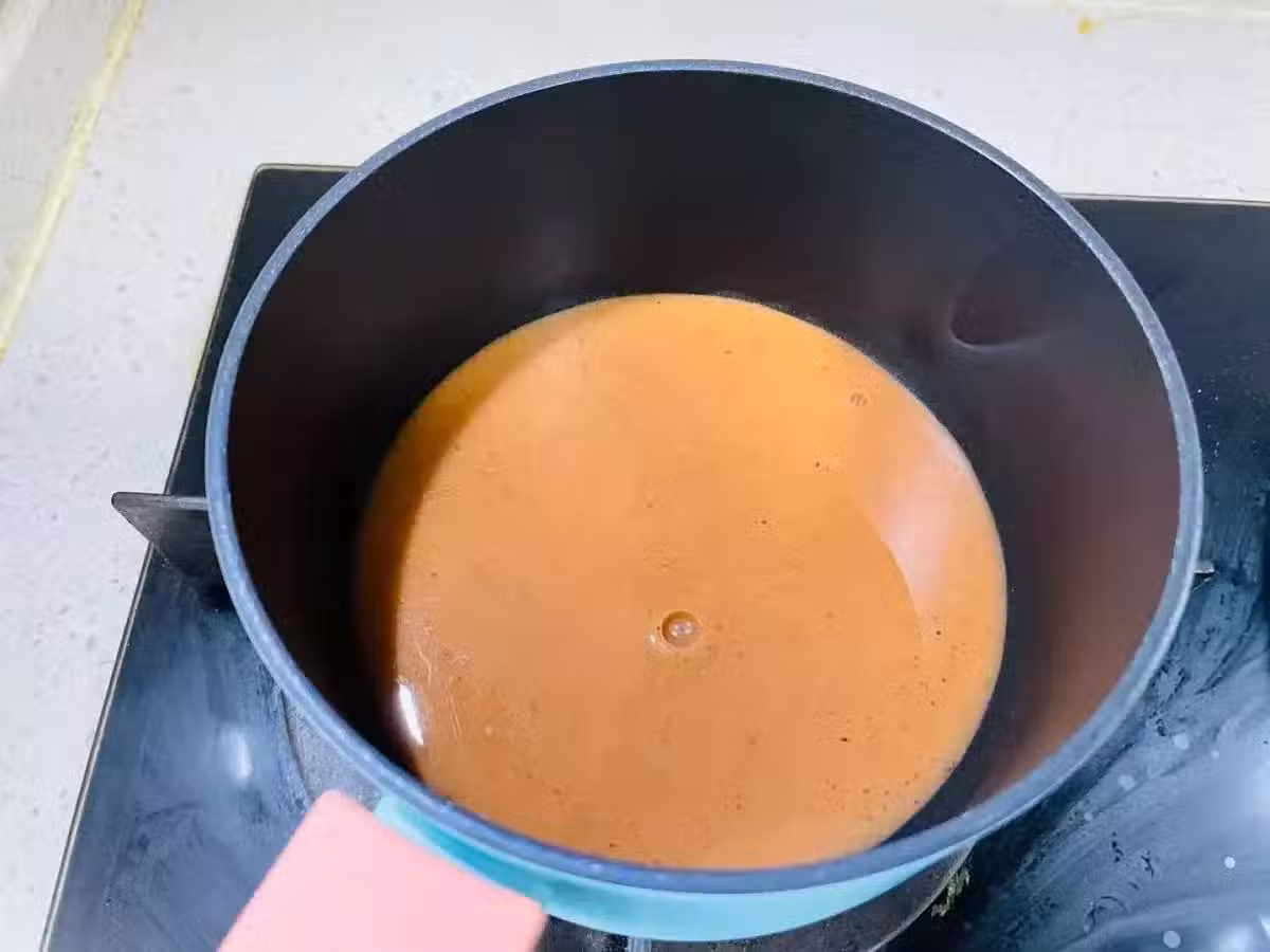 4、調製土豆泥黑椒汁,在碗中放入1湯匙澱粉,3克左右的黑胡椒顆粒,1.5湯匙蚝油,適量水攪拌均勻,倒入鍋中小火熬制到黏稠的狀態,然後澆在扣好的土豆泥上就可以啦。