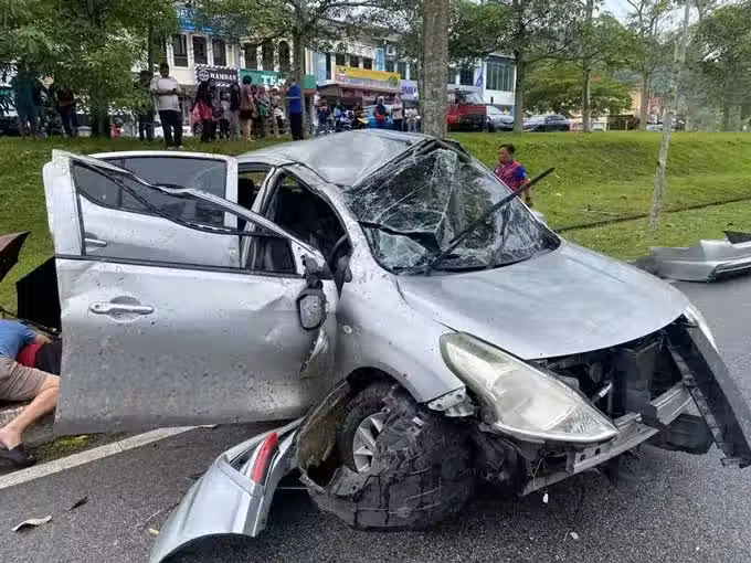 (居鑾31日訊)一家華裔四口在國慶日出遊,豈料所乘轎車失控打滑猛撞向分界堤的大樹,造成14歲女兒當場喪命,母親的頭部重創情況危急。