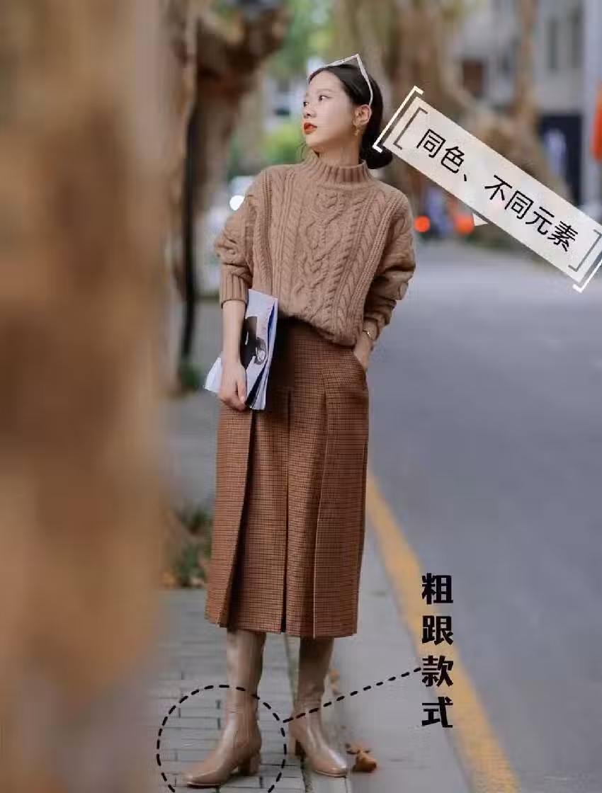 NO.2毛衣+百褶裙搭配高筒靴「毛衣+百褶裙」的搭配組合溫柔感爆棚,上身超提氣質,各個年齡段的女生上身都可以輕鬆get少女感。