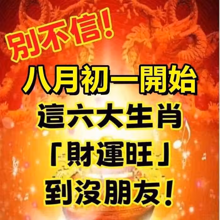 別不信!農暦八月初一開始,這六大生肖「財運旺」到沒朋友 !
