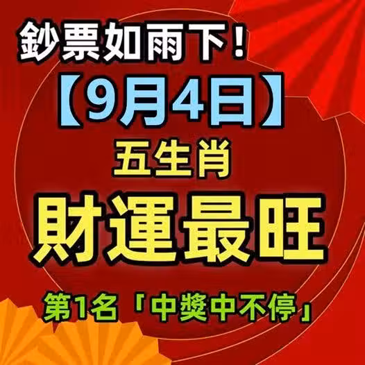 鈔票如雨下!【9月4日】五生肖財運最旺,第1名「中獎中不停」