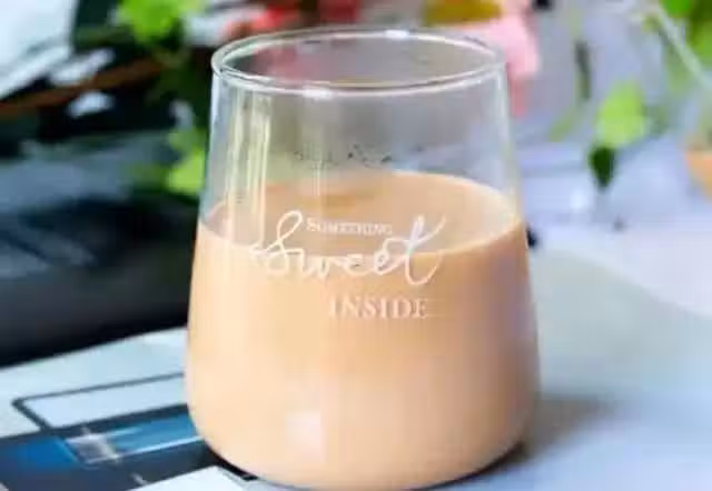 2、煮好的奶茶過濾點茶渣,喜歡珍珠的還可以放珍珠、燒仙草蜜豆一起更好喝