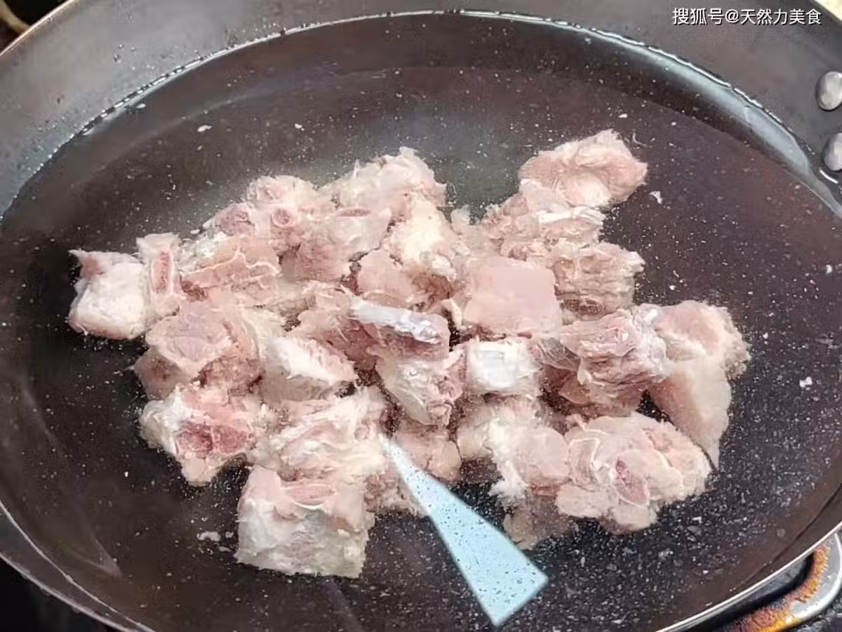 2、看到鍋中的水沸騰後再煮3分鐘左右就可以撈出,接著用熱水清洗一下,要把表面的浮沫和雜質清洗乾淨,最好一直洗到水比較清澈為止,這樣能最大程度減少腥味,洗好後先放一旁控水備用。