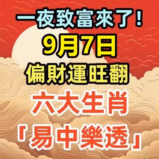 一夜致富到來了!9月7日偏財運旺翻「易中樂透」的生肖!
