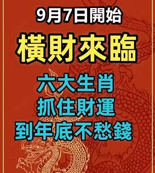 9月7日開始橫財來臨,6大生肖抓住財運,到年底不愁錢