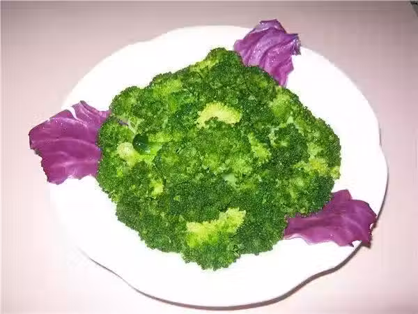 1、西藍花撕成小朵入開水中燙熟,再快速放入涼水裡漂一下,保持西藍花的鮮色和爽脆的質地;