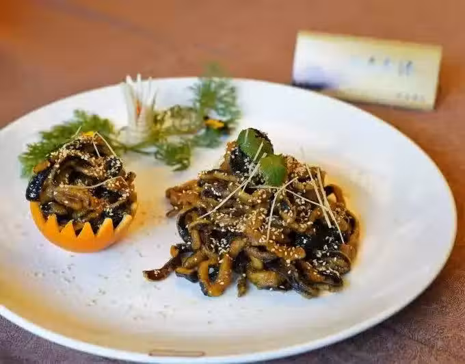 1、干香菇泡水發透,放入湯鍋煮半小時,撈出沖涼剪絲;