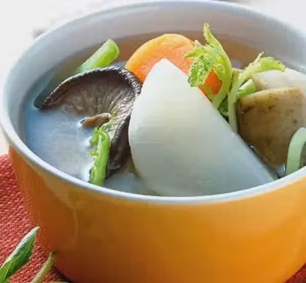 菇 1朵、金針菇 25g、白蘿蔔 45g、紅蘿蔔 15g、大白菜 80g、花椰菜 20g、蒟蒻絲 45g、高湯1杯、鹽1小匙