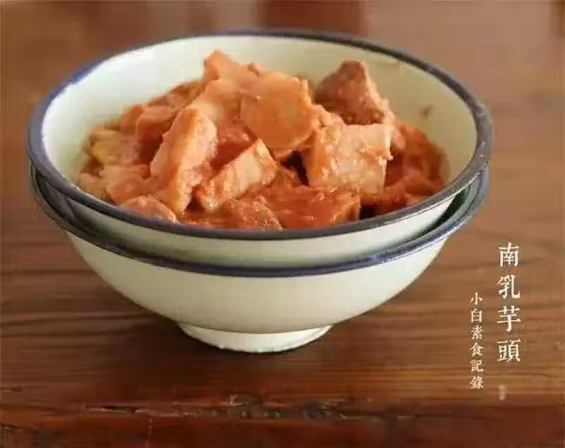 芋頭一斤,花菇兩個,生薑2片,紅腐乳一塊,腐乳汁2大匙