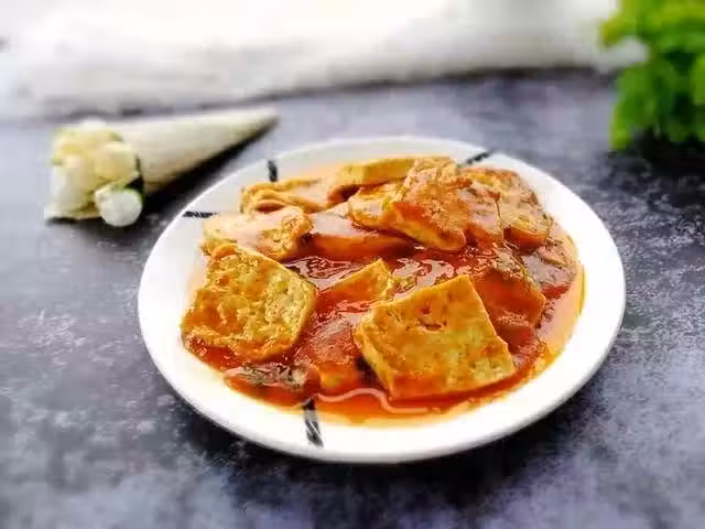 嫩豆腐1大塊,番茄醬3勺,生抽1勺,澱粉1勺,鹽少許,油適量